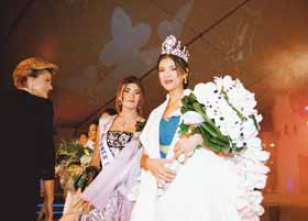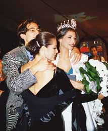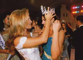 Miss Liban 95, Dina Azar pose sur la tête de la nouvelle Miss la couronne. |