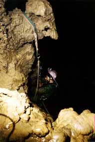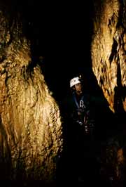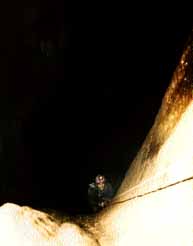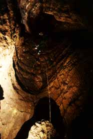 Suspendu au bout d’une corde dans ce qui ressemble à un estomac. Ce n’est que le ventre de la terre! |