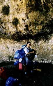 Etre spéléologue ce n’est pas uniquement une partie de plaisir car il faut transporter tout un matériel à l’aller comme au retour. C’est le travail de l’équipe de surface, dont fait partie Jean-Pierre Zahar. |