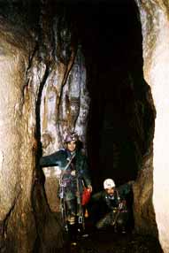 Face à face entre Georges Assil et son coéquipier, juste avant d’entreprendre la descente d’un énorme puits. |