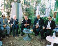 ![]() MM. Ahmed Soueid, le président Salim Hoss, Bassem Sabeh, Robert Ghanem, Mgr el-Hachem, et Me Raymond Eid. |