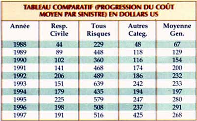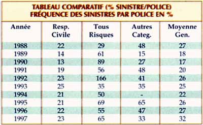 D’où résulte un pourcentage moyen des sinistres par rapport
