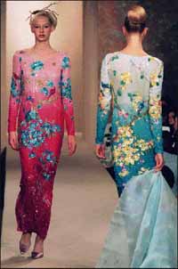 Les broderies lancées sur de magnifiques robes de soie, couleur