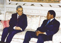 Le président Baré, son fils Djebril et son épouse Clémence (à d.).