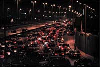 Le flot de voitures sur l’autoroute menant à la Cité sportive.